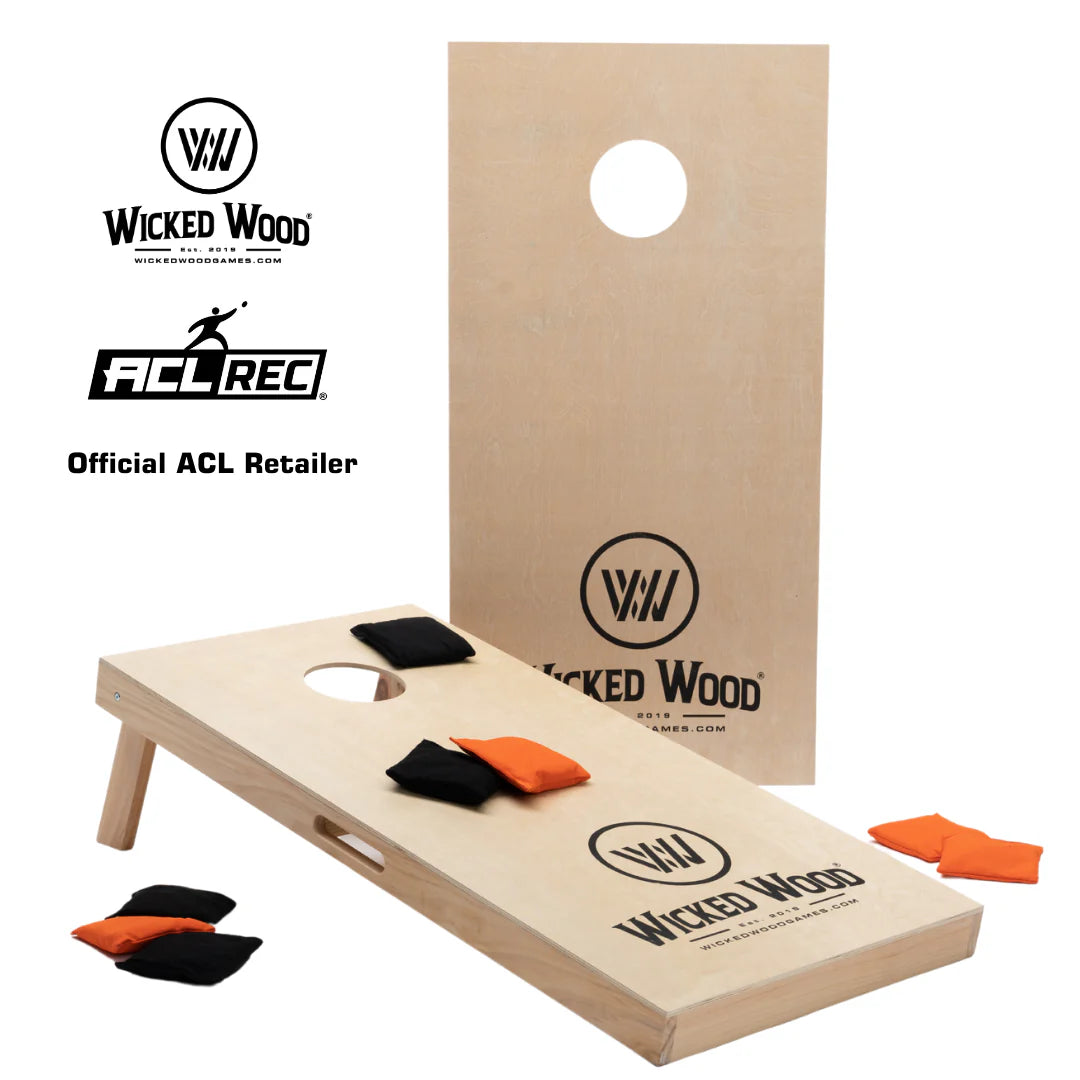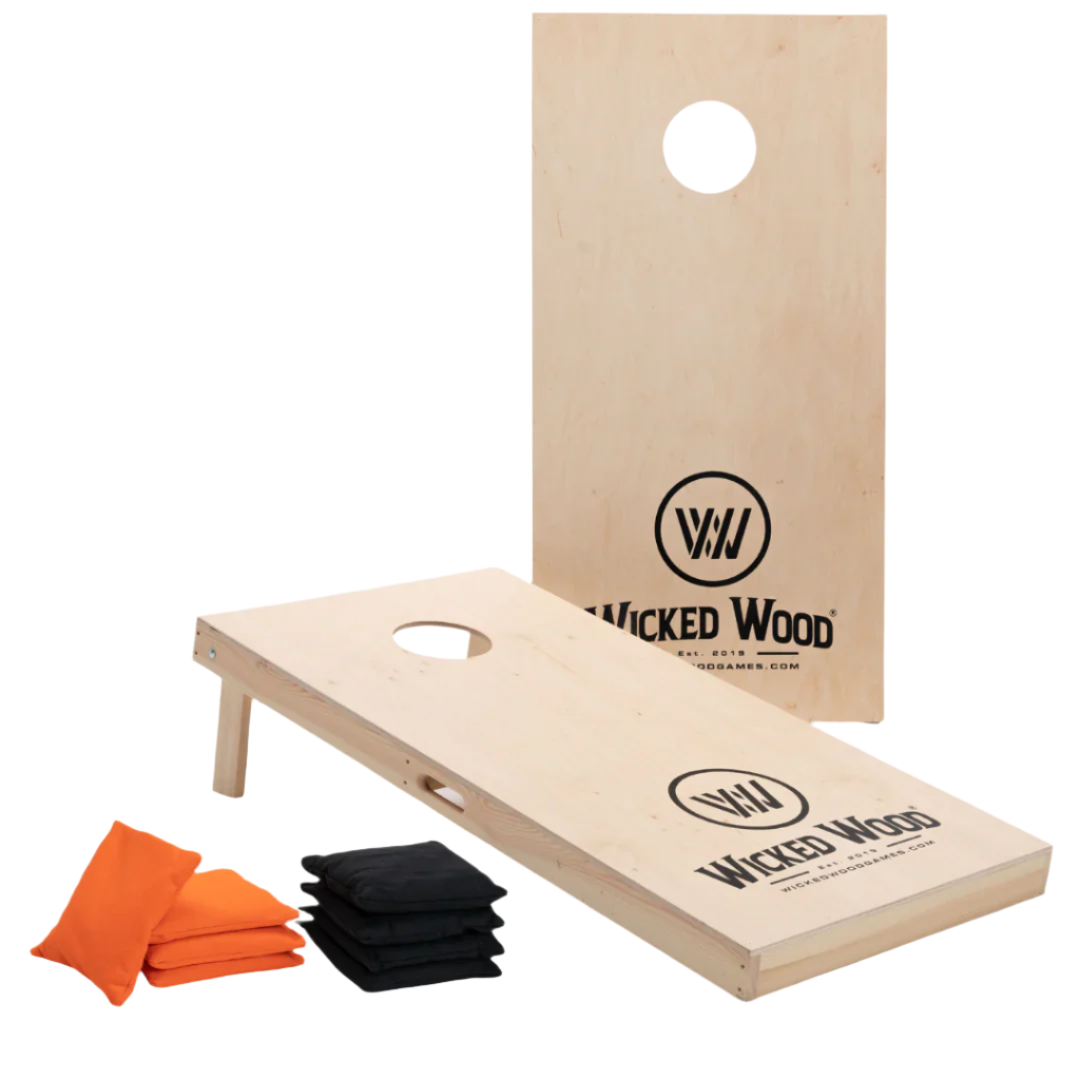 Cornhole sett med to cornhole-brett og to sett med standard bagger fra Wicked Wood.